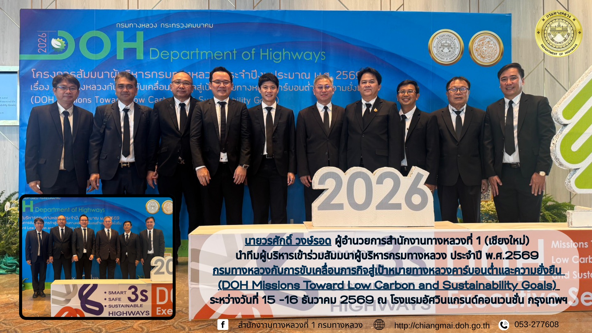 10 15/12/2568 สัมมนาผู้บริหารกรมทางหลวง ประจำปี พ.ศ.2569 “กรมทางหลวงกับการขับเคลื่อนภารกิจสู่เป้าหมายทางหลวงคาร์บอนต่ำและความยั่งยืน (DOH Missions Toward Low Carbon and Sustainability Goals)