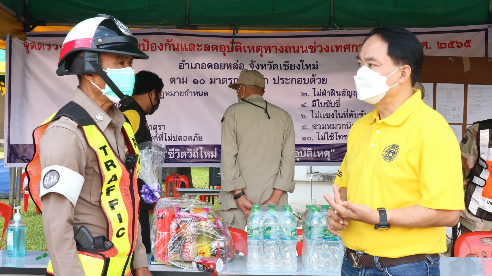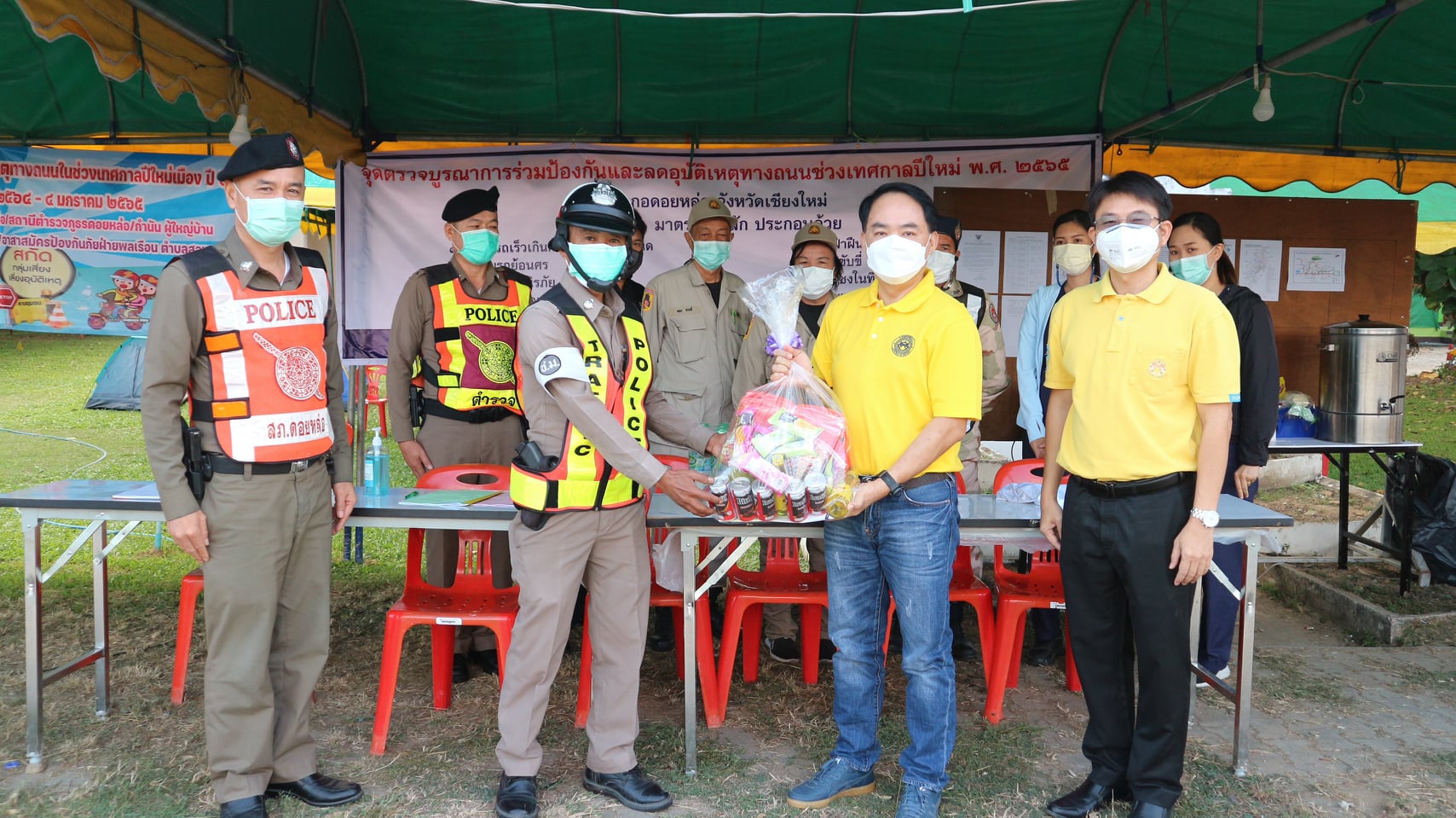 วันนี้ (31 ธันวาคม 2564) เวลา 9.00 น. นายชิดชัย ศรีดามา รองผู้อำนวยการสำนักงานทางหลวงที่ 1 ผู้แทนสำนักงานทางหลวงที่ 1 พร้อมด้วย นายพงษ์พินันท์ บูรณะกิติ ผู้อำนวยการส่วนแผนงาน ตรวจเยี่ยมจุดตรวจบูรณาการร่วมป้องกันและลดอุบัติเหตุทางถนนช่วงเทศกาลปีใหม่ พ.ศ.2565 จังหวัดเชียงใหม่ ณ หน้าศูนย์เรียนรู้เพื่อพัฒนาคุณภาพชีวิตบ้านสามหลัง หมู่ที่ 8 ตำบลสองแคว อำเภอดอยหล่อ จังหวัดเชียงใหม่ เพื่อเป็นขวัญและกำลังใจให้กับเจ้าหน้าที่ในการปฏิบัติหน้าที่อำนวยความสะดวกและปลอดภัยให้กับประชาชนในช่วงเทศกาลปีใหม่
