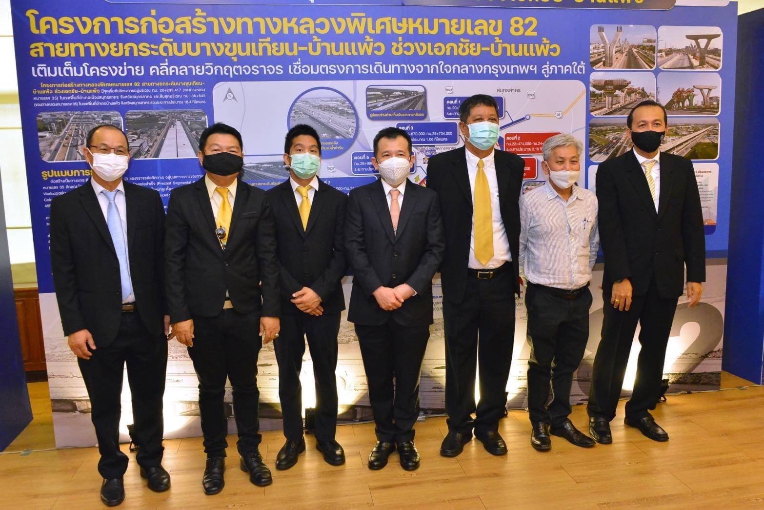 นายศักดิ์สยาม ชิดชอบ รัฐมนตรีว่าการกระทรวงคมนาคม กล่าวว่า ถนนพระราม 2 เป็นเส้นทางหลักเชื่อมสู่ภาคใต้ของประเทศ มีปัญหาจราจรติดขัดจนเป็นอุปสรรคต่อการเดินทางมาโดยตลอด พลเอก ประยุทธ์ จันทร์โอชา นายกรัฐมนตรี จึงมีนโยบายให้กระทรวงคมนาคมเร่งแก้ไขปัญหาให้ลุล่วงโดยเร็ว โดยเมื่อวันที่ 9 กุมภาพันธ์ 2564 คณะรัฐมนตรีได้มีมติอนุมัติให้ดำเนินการก่อสร้างโครงการทางหลวงพิเศษหมายเลข 82 สายทางยกระดับบางขุนเทียน - บ้านแพ้ว ช่วงเอกชัย - บ้านแพ้ว โดยให้กรมทางหลวง (ทล.) ใช้เงินทุนค่าธรรมเนียมผ่านทางมาดำเนินการในส่วนของงานโยธา กระทรวงฯ จึงได้สั่งการให้ ทล. เร่งดำเนินการหาผู้รับจ้างก่อสร้าง โดยการแก้ปัญหาจะต้องดำเนินการบนถนนพระราม 2 ตลอดแนวเส้นทาง และเชื่อมต่อเข้ากับโครงข่ายทางพิเศษ (การทางพิเศษแห่งประเทศไทย) ทางหลวงพิเศษ และทางหลวงแผ่นดิน (กรมทางหลวง) รวมระยะทาง 90.8 กิโลเมตร ประกอบด้วย 1) โครงการทางพิเศษ สายพระราม 3 - ดาวคะนอง - วงแหวนรอบนอกกรุงเทพมหานคร ด้านตะวันตก ระยะทาง 18.7 กิโลเมตร 2) โครงการก่อสร้างทางยกระดับบนทางหลวงหมายเลข 35 สายธนบุรี - ปากท่อ ช่วงบางขุนเทียน - เอกชัย ระยะทางรวม 8.3 กิโลเมตร ปัจจุบันอยู่ระหว่างการก่อสร้าง ขณะนี้การก่อสร้างมีความก้าวหน้าแล้วร้อยละ 57 3) โครงการก่อสร้างทางหลวงพิเศษหมายเลข 82 ช่วงเอกชัย - บ้านแพ้ว ระยะทาง16.4 กิโลเมตร ซึ่งเป็นโครงการที่มีพิธีการลงนามสัญญาก่อสร้างงานโยธา ในวันนี้ (2 กุมภาพันธ์ 2565) และ 4) โครงการทางหลวงพิเศษหมายเลข 82 ช่วงบ้านแพ้ว - ปากท่อ ระยะทาง 47.4 กิโลเมตร สิ้นสุดที่แยกวังมะนาว อำเภอปากท่อ จังหวัดราชบุรี ซึ่งเป็นโครงการที่มีแผนก่อสร้างในอีก 5 ปีข้างหน้า (พ.ศ. 2570) โดยกระทรวงฯ คาดว่าโครงการนี้จะเป็นอีกหนึ่งทางเลือกในการคมนาคมขนส่งจากกรุงเทพฯ สู่ภาคใต้ และช่วยแก้ปัญหาการจราจรบนถนนพระราม 2 ได้อย่างยั่งยืนต่อไป