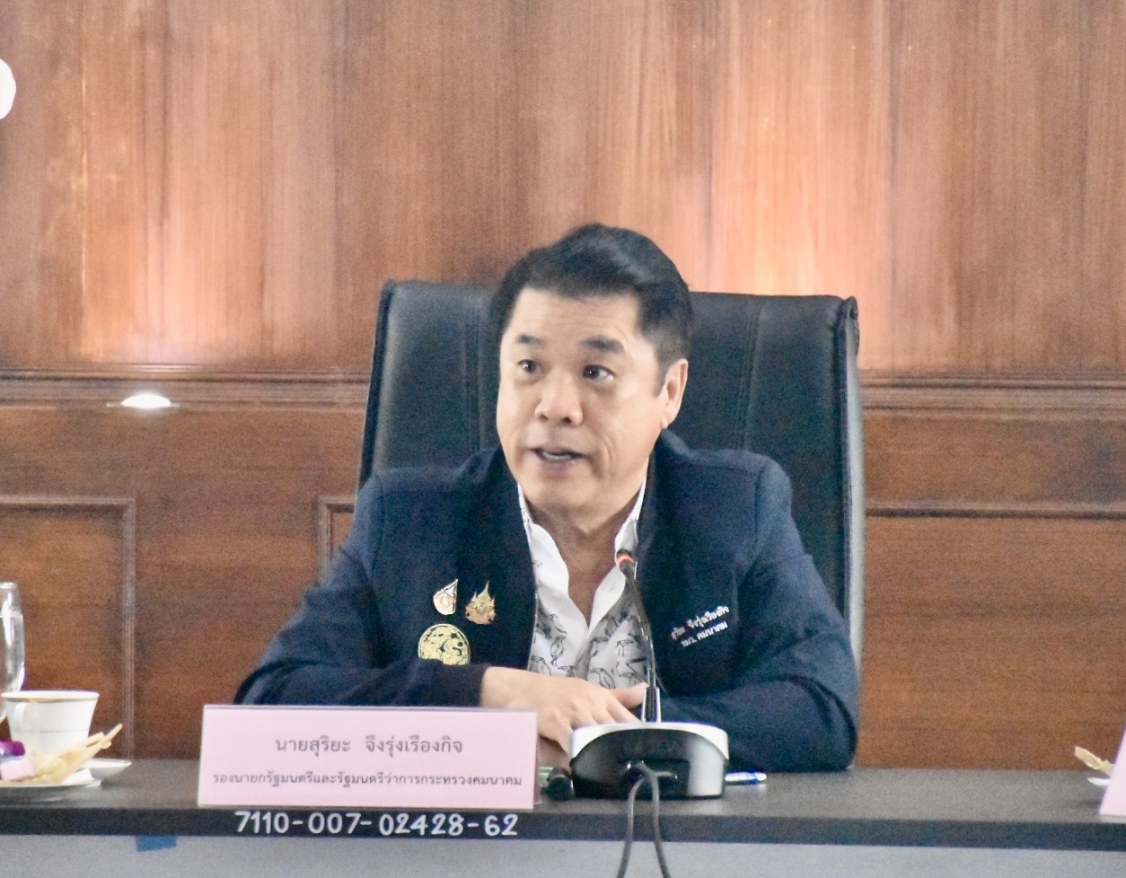 วันพฤหัสบดีที่ 10 ตุลาคม 2567 เวลา 9.30 น. นายสุริยะ จึงรุ่งเรืองกิจ รองนายกรัฐมนตรี และรัฐมนตรีว่าการกระทรวงคมนาคม พร้อมด้วย นางมนพร เจริญศรี รัฐมนตรีช่วยว่าการกระทรวงคมนาคม นายชยธรรม์ พรหมศร ปลัดกระทรวงคมนาคม นางสาวรัชนีพร ธิติทรัพย์ รองปลัดกระทรวงคมนาคม นายอภิรัฐ ไชยวงศ์น้อย อธิบดีกรมทางหลวง นายมนตรี เดชาสกุลสม อธิบดีกรมทางหลวงชนบท พร้อมคณะ เดินทางลงพื้นที่ตรวจราชการจังหวัดเชียงใหม่ และรับฟังการประชุมบรรยายสรุปสถานการณ์อุทกภัยในพื้นที่จังหวัดเชียงใหม่ โดยมีนายวรศักดิ์ วงษ์รอด ผู้อำนวยการสำนักงานทางหลวงที่ 1 นายรัฐพงษ์ เลิศสุวรรณไพศาล รองผู้อำนวยการสำนักงานทางหลวงที่ 1 ตำแหน่งที่ 1 นายสมเดช โสภณดิเรกรัตน์ รองผู้อำนวยการสำนักงานทางหลวงที่ 1 ตำแหน่งที่ 2 ผู้อำนวยการแขวงทางหลวงในสังกัด หัวหน้าส่วนราชการในสังกัดกระทรวงคมนาคมพื้นที่จังหวัดเชียงใหม่ และคณะผู้บริหาร ให้การต้อนรับและเข้าร่วมประชุมรับฟังบรรยายสรุปฯ ณ ห้องประชุม 1 ชั้น 3 สำนักงานทางหลวงที่ 1