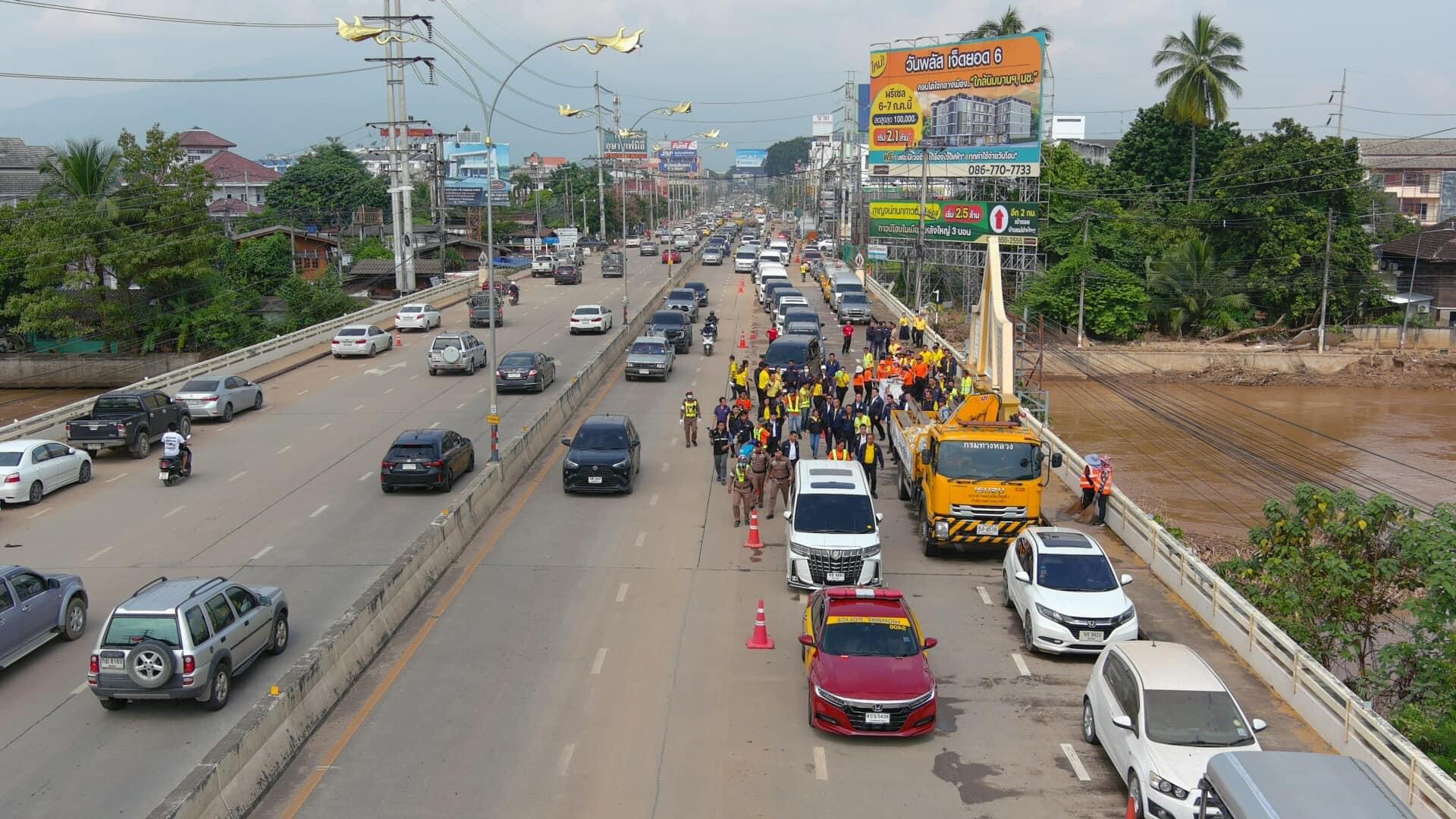 ต่อมา นายสุริยะ จึงรุ่งเรืองกิจ รองนายกรัฐมนตรี และรัฐมนตรีว่าการกระทรวงคมนาคม พร้อมคณะ ลงพื้นที่ติดตามสถานการณ์หลังเหตุการณ์น้ำท่วมบริเวณพื้นที่ถนนมหิดล ทางหลวงหมายเลข 1141 จ.เชียงใหม่ ,หมู่บ้านหนองช้างคืน ทางหลวงหมายเลข 1030 จังหวัดลำพูน และ ทางหลวงชนบท ชม.3029 จังหวัดเชียงใหม่ พร้อมมอบถุงยังชีพแก่ประชาชนในพื้นที่ได้รับผลกระทบจากเหตุการณ์น้ำท่วม พร้อมได้ลงพื้นที่ตรวจเยี่ยมเจ้าหน้าที่หน่วยงานในสังกัดกระทรวงคมนาคมพื้นที่จังหวัดเชียงใหม่ เพื่อเป็นขวัญและกำลังใจ