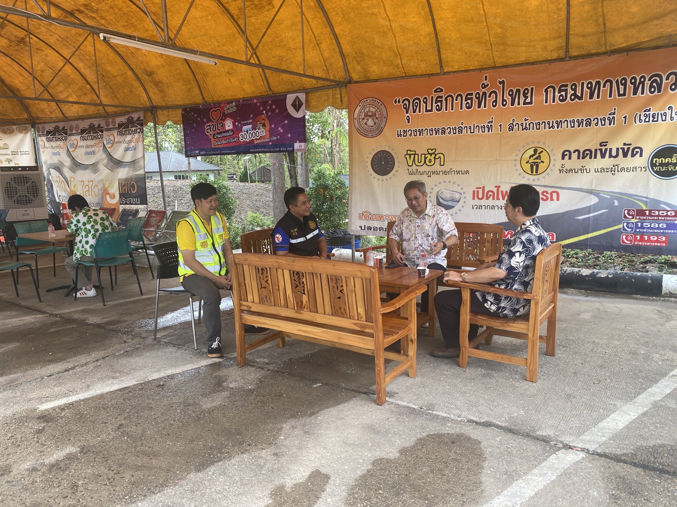 นายวรศักดิ์ วงษ์รอด ผู้อำนวยการสำนักงานทางหลวงที่ 1 พร้อมด้วยนายภาสกร เจตะบุตร ผู้อำนวยการส่วนอำนวยความปลอดภัย นายสอาด ทิพย์ศรีบุตร ผู้อำนวยการส่วนเครื่องกล นางสาวกิ่งกานต์ ดวงเนตร ผู้อำนวยการส่วนเทคโนโลยีสารสนเท เดินทางไปตรวจเยี่ยม พร้อมมอบของตรวจเยี่ยมและน้ำดื่ม เพื่อสร้างขวัญกำลังใจให้กับเจ้าหน้าที่ที่ปฏิหน้าที่อำนวยความสะดวกและปลอดภัยให้กับประชาชนตลอดช่วงเทศกาลสงกรานต์ ณ จุดให้บริการประชาชน ในพื้นที่จังหวัดลำปางและจังหวัดลำพูน