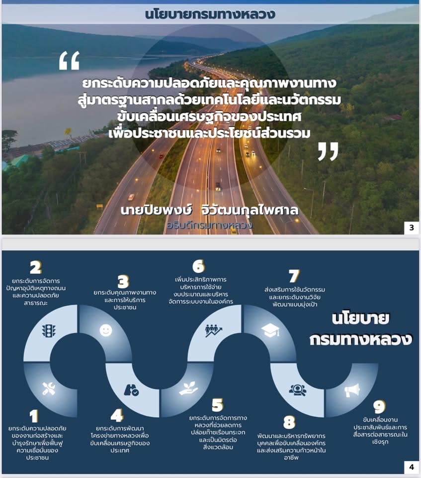 สำนักงานทางหลวงที่ 1 ร่วมรับนโยบายจากนายปิยพงษ์ จิวัฒนกุลไพศาล อธิบดีกรมทางหลวง เพื่อเป็นแนวทางในการขับเคลื่อนภารกิจของทางหลวงสู่ความมั่นคง ยั่งยืน และตอบสนองต่อประชาชนอย่างมีประสิทธิภาพ โดยมีนายสมเดช โสภณดิเรกรัตน์ รองผู้อำนวยการสำนักงานทางหลวง ตำแหน่งที่ 2 เป็นประธาน นำผู้อำนวยการส่วน และหัวหน้างานเข้าร่วมรับฟังนโยบายพร้อมแสดงพลังความร่วมมือในการพัฒนาโครงสร้างพื้นฐานของประเทศ ผ่านสื่ออิเล็กทรอนิกส์ ณ ห้องประชุมชั้น 3 สำนักงานทางหลวงที่ 1 (เชียงใหม่)